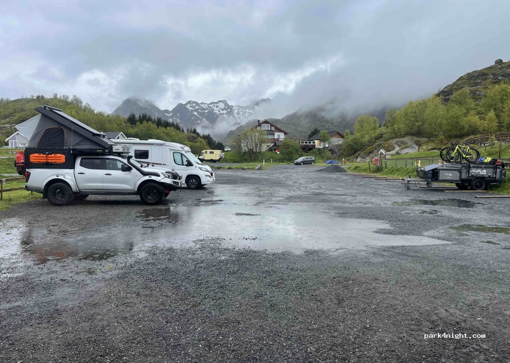 Der Platz ist viel zu teuer und für campervans nicht so schöne Stellplätze. Hier macht man maximalen Gewinn nur weil es die lofoten sind, alles kostet extra... nach kurzem Überblick über den platz sind wir weiter gefahren