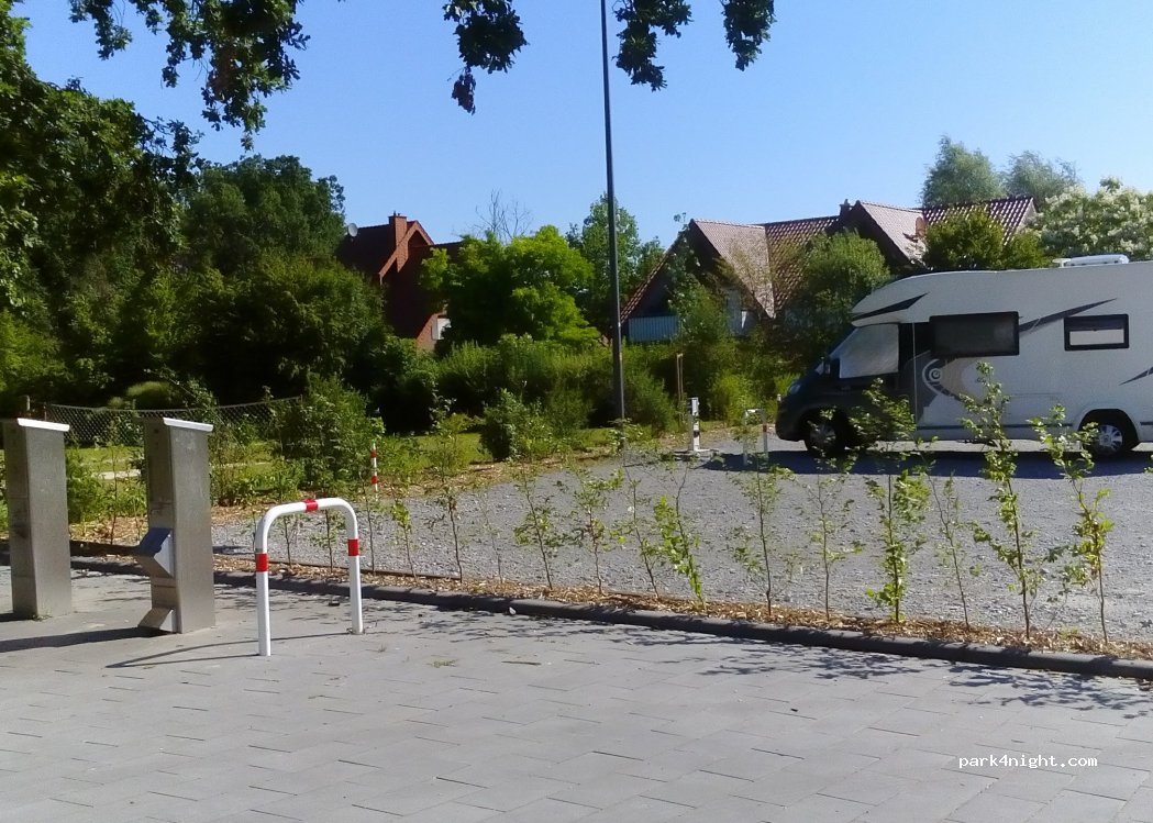 Ruhiger günstiger Stellplatz. Anmeldung im Hallenbad, sehr nettes Personal. Der grobe Schotter ist nicht so toll. Spielplatzbesucher parken morgens um 9:00 und Abends auf der Ver- Entsorgungsstation.