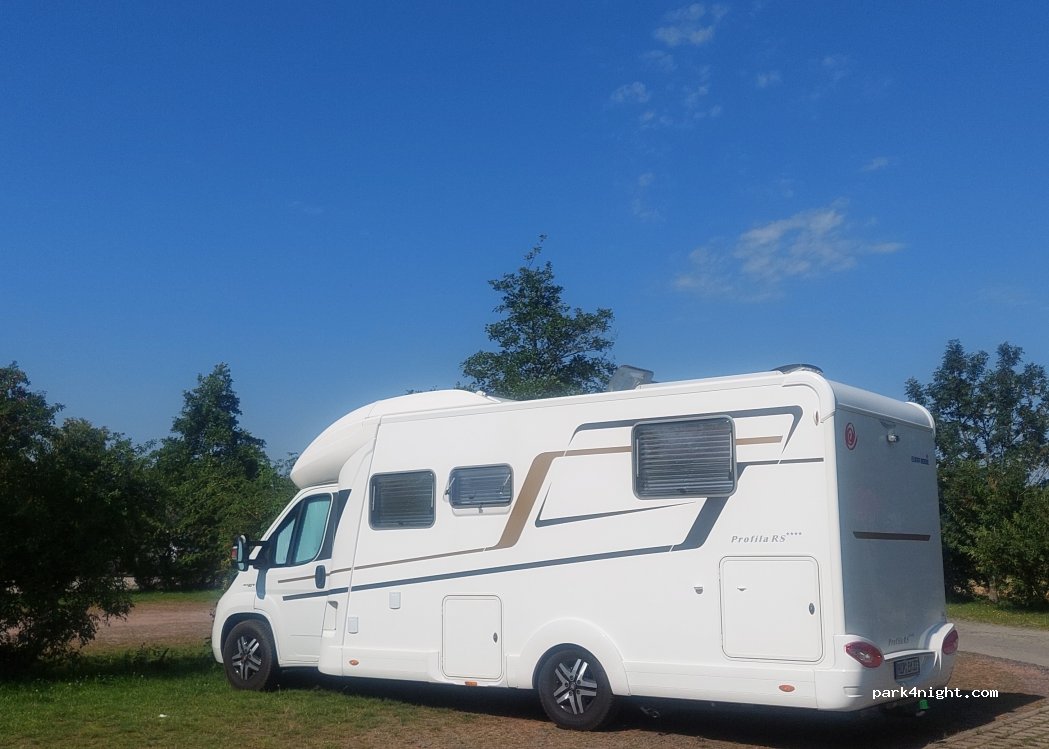 Ein schöner und ruhiger Stellplatz direkt vor der Krabat Mühle, haben ein 7,5 m WOMO, war in der letzten Reihe des Parkplatz kein Problem.