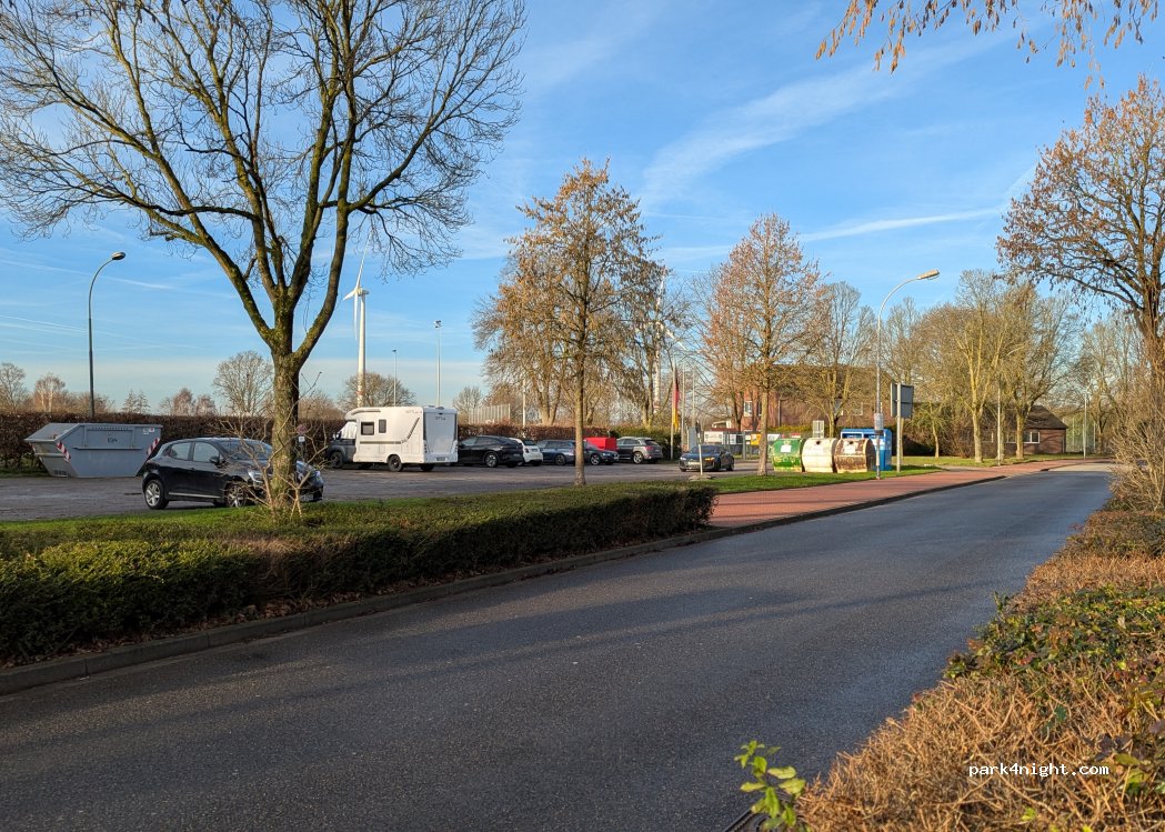 Prima plek voor een nacht. Weinig Schaduw en veel voertuigen voor voetbaltraining, maar toch voldoende ruimte voor een paar campers. Plaats in Oedt was al vol. Geen faciliteiten.