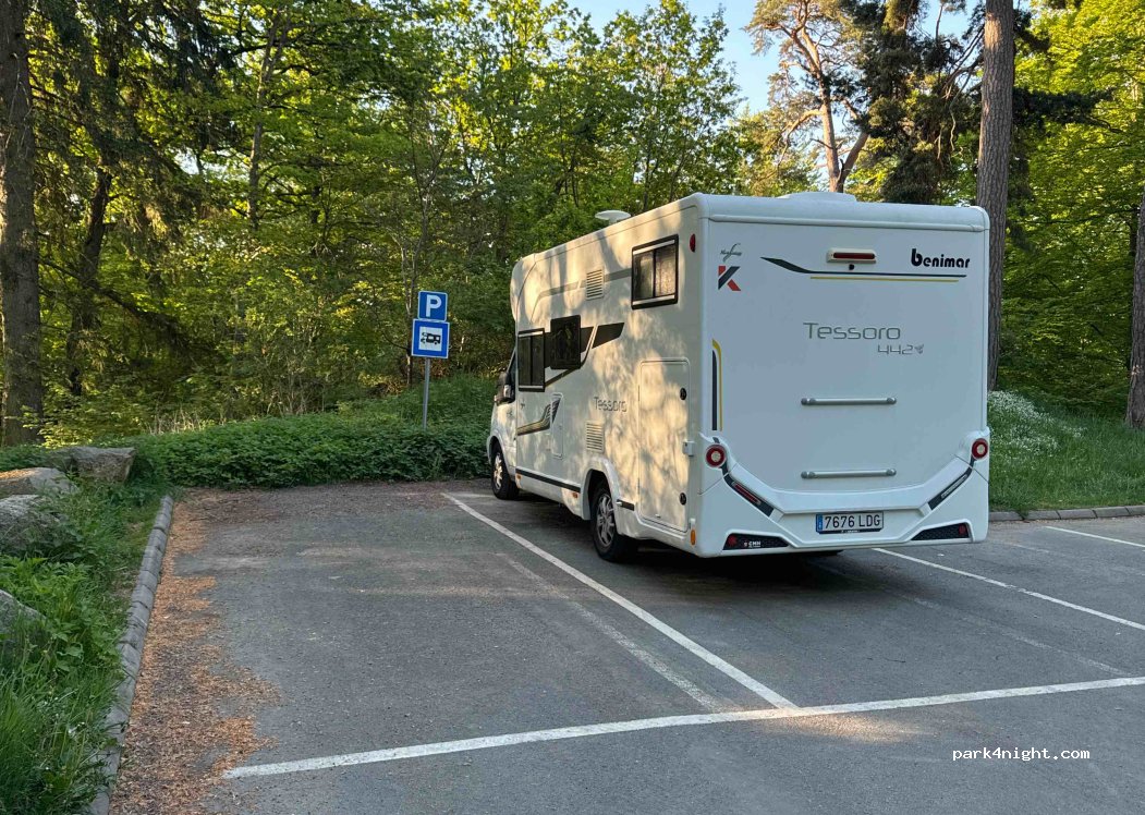 2 official and free parking spaces for motorhomes directly in front of the entrance to the upper end of the city park. Each nine meters long and three meters wide.