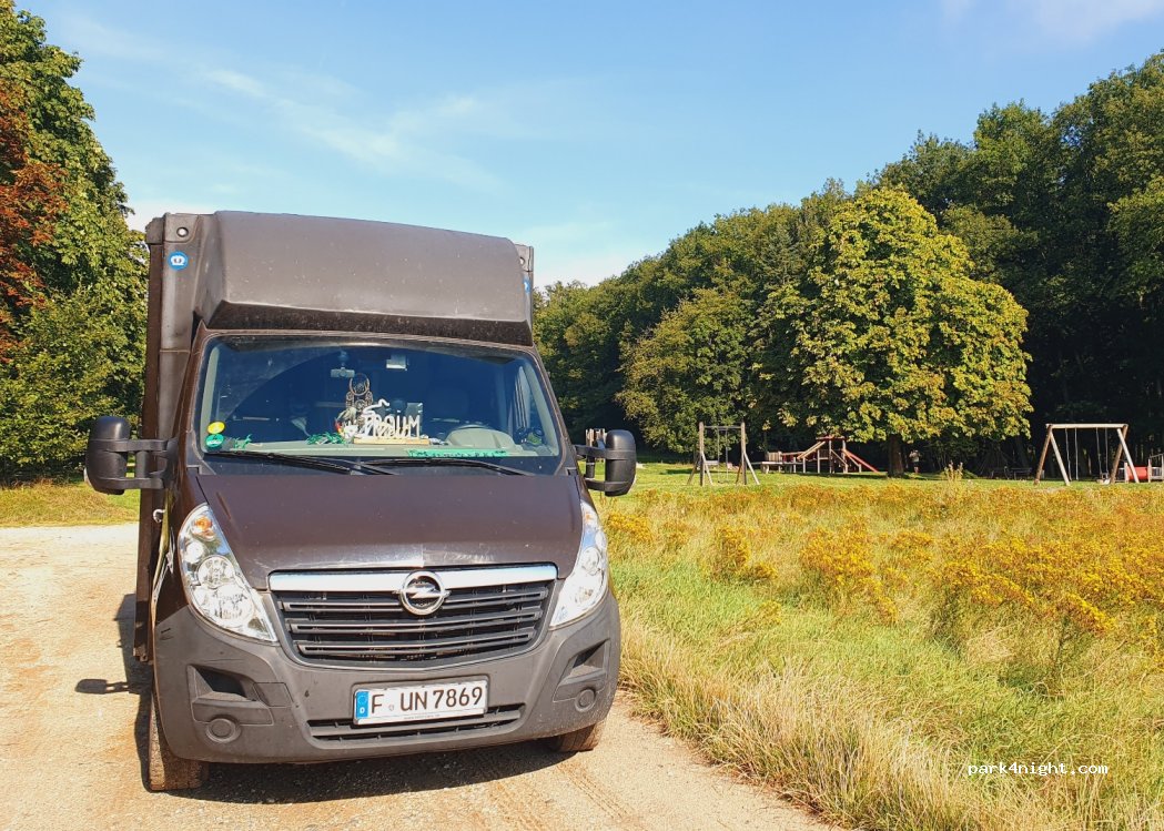 Beau parking isolé en pleine nature avec une vue imprenable sur les toits de Francfort. Juste derrière se trouve un restaurant où l'on peut bien manger et pour pas cher. Une aire de jeux est également disponible. Un Aldi à 3 minutes.