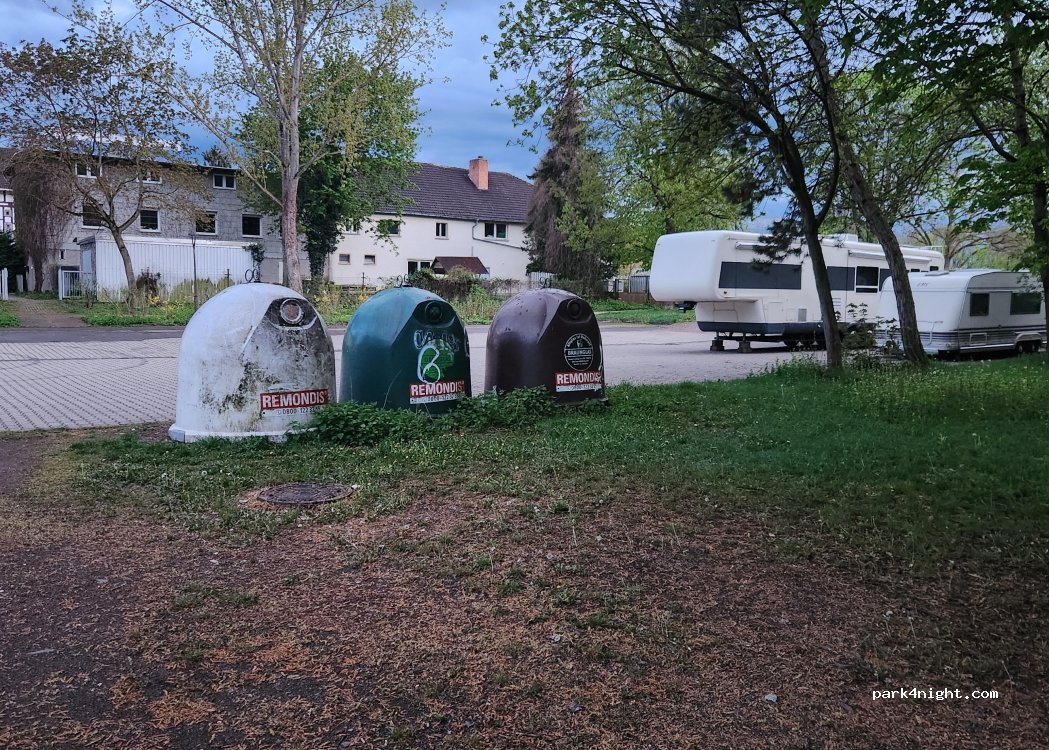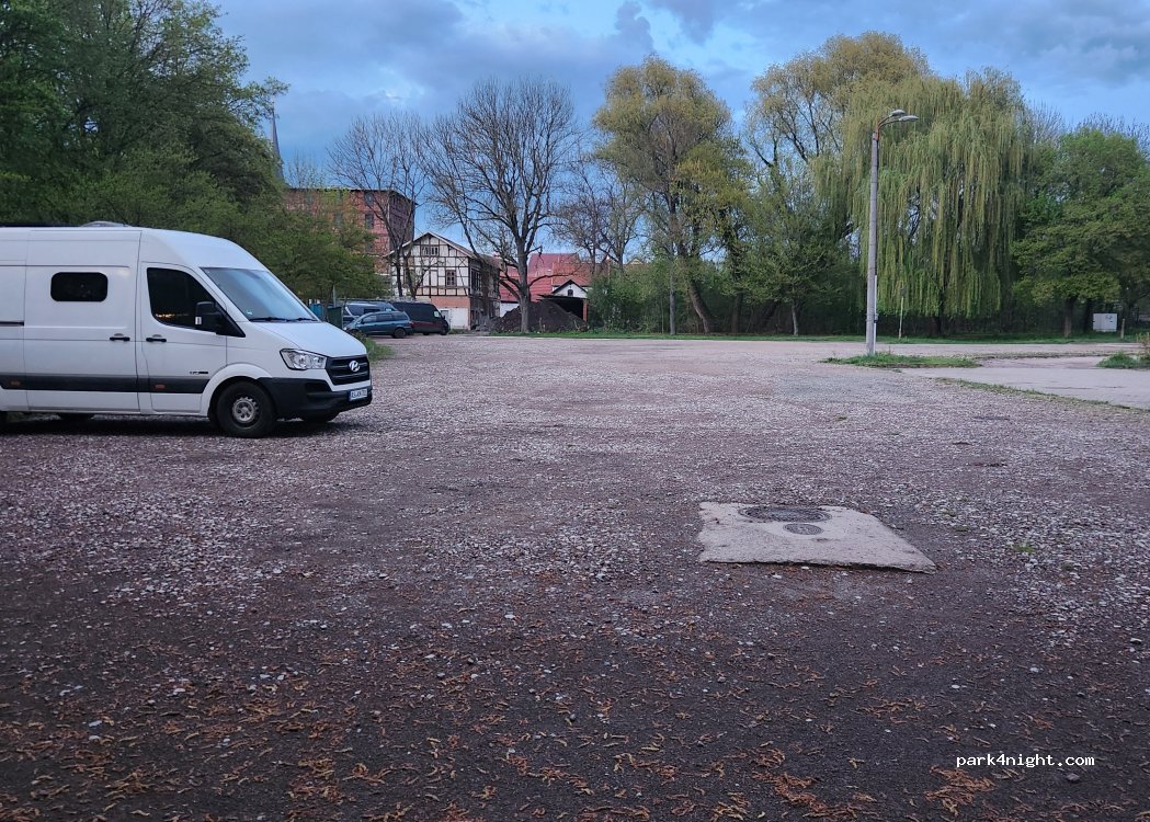 Save place to stay overnight. The park nearby is visited by families but gets dead quiet in the later hours. You will find shops and restaurants nearby (shops close about 18:00 hrs) and there is a swimming area next to the parking lot thats open during the season. There are also REWE and Kaufland Supermarkets about 3 km down the main roads and you will find 3 gas stations in all directions at the place. Bus and train stations in town. Good roads for bycicles. Kajak at the small river nearby possible. Hand-Wash your caravan at IPSA service station in the east part of the town. Not too much culture going on since its a small town but its worth a 1 day stay or maybe a good satellite spot if the Erfurt City Area is too filled up.
