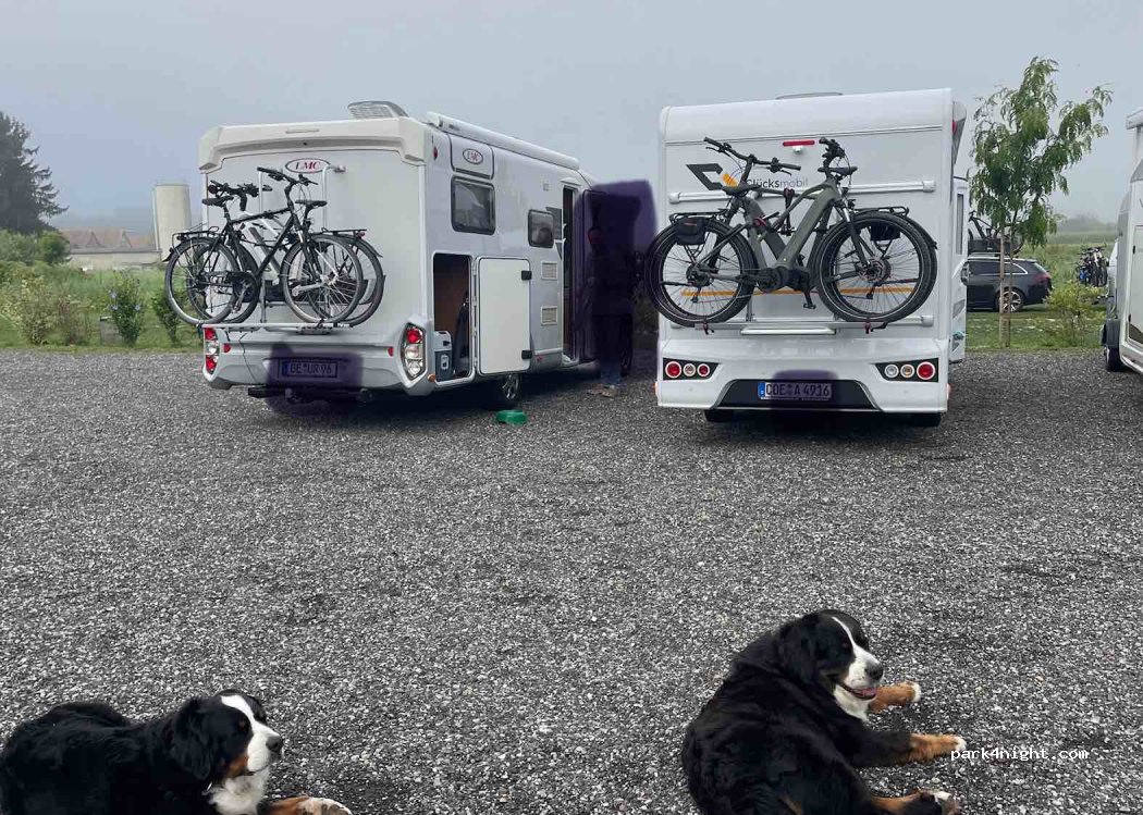 Übernachtungsplatz nahe der Autobahn, freie Platzwahl, 22€ pro Wohnmobil incl. Strom, akut kein Warmwasser. Restaurant leider am Wochenende geschlossen.