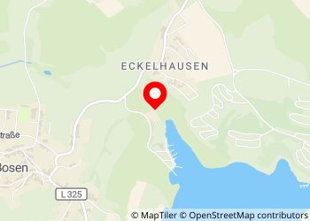 Direkt am Kunstzentrum Bosener Mühle gelegen, teilweise schattig, etwa 500m zum Bostalsee, Cafe an der Mühle von Mi-So von 15-18 Uhr geöffnet