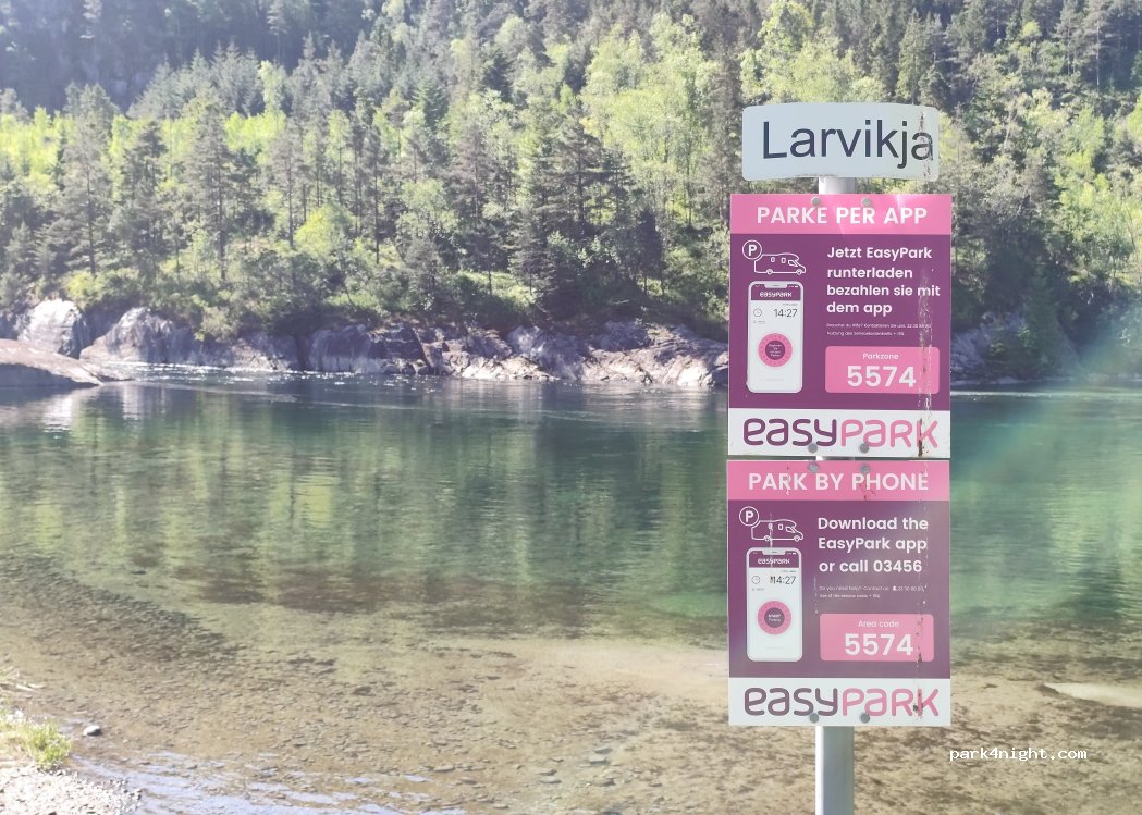 Emplacement vraiment au calme, belle randonnée sur les hauteurs via la passerelle et très près du centre ville, paiement facile avec l'application EasyPark. 24h 86,96 Nok, 48h 173 Nok, 72h 260 Nok