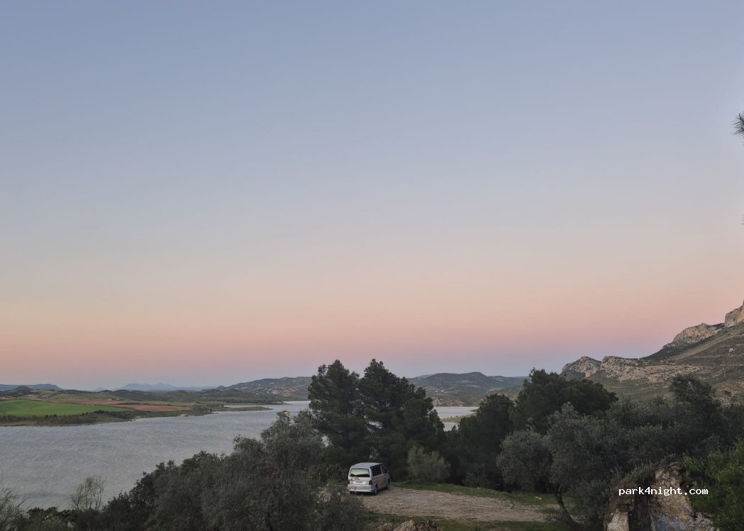 Son duda el mejor sitio en el que hemos dormido! Vistas espectaculares al embalse, plataforma plana perfecta para dormir con la furgo nivelada. Sendas cerca para caminar o montar en bici. La única pega se escucha un poco la carretera, pero dentro de la furgo prácticamente nada. Repetiría sin dudar!