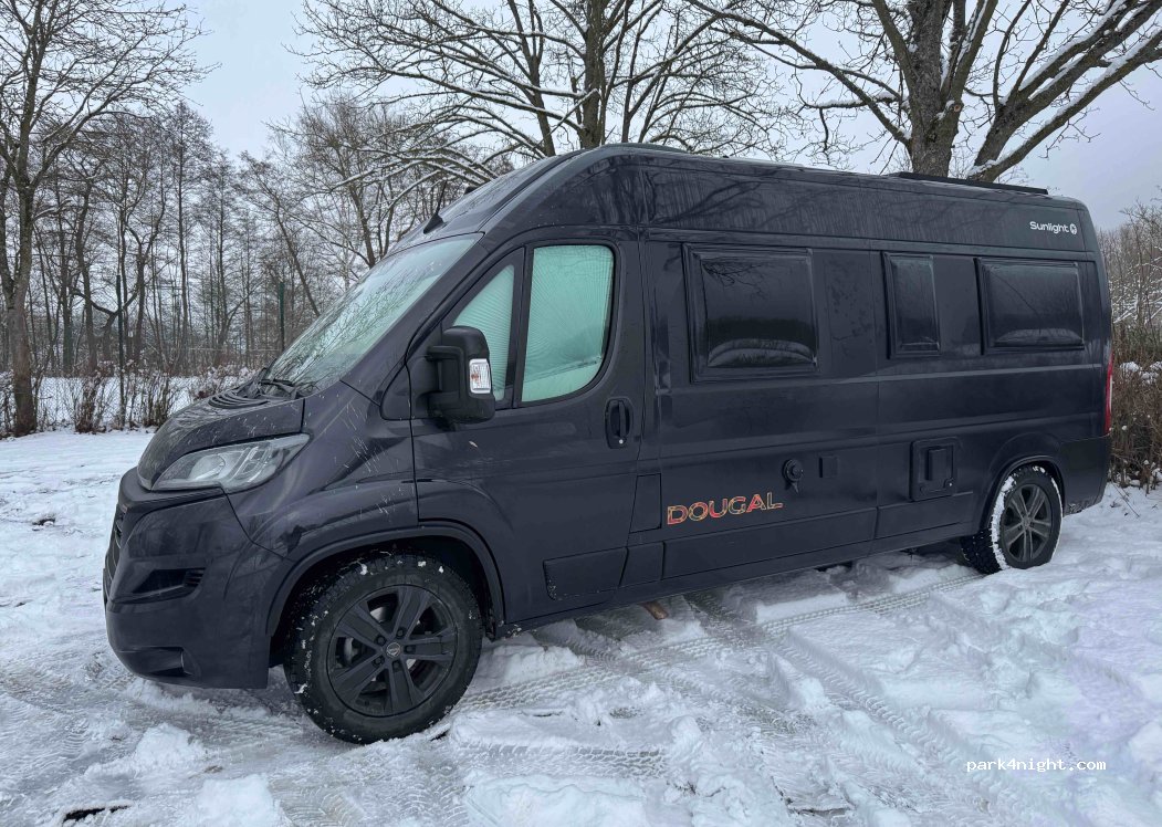 We arrived in the evening and in snow and left early the next morning in even more snow! Electric is paid for by 1€ coins only, toilets appear not to be open in early January. But supermarket 10 minutes walk with customer toilets. (Supermarket closed on a Sunday) . Quiet spot no problems great for 1 night.