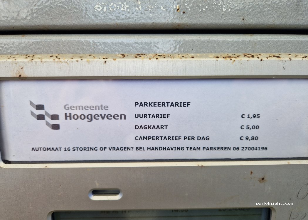 Mooie plek, schoon en met 3 campers rustig gestaan. Langsrijdend verkeer in de avond en ochtend maar s nachts heerlijk stil. We kwamen laat aan, parkeerautomaat defect. Bij de Jumbo is een 2 e automaat die werkte wel. Echter na 19 u hoef je niet te betalen en we waren vroeg weg. 1 euro voor 24 uur electriciteit.