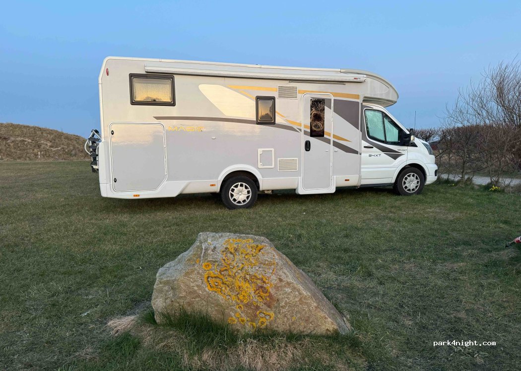 Area camper super silenziosa con un bellissimo laghetto. Wc docce e Wifi comprese nella tariffa giornaliera che rispetto ai campeggi dell’isola è più economica. Noi in 5 e il camper abbiamo pagato 265DKK. Gestore super gentile e disponibile, ci ha accontentato ad alcune nostre richieste. Consigliatissimo.