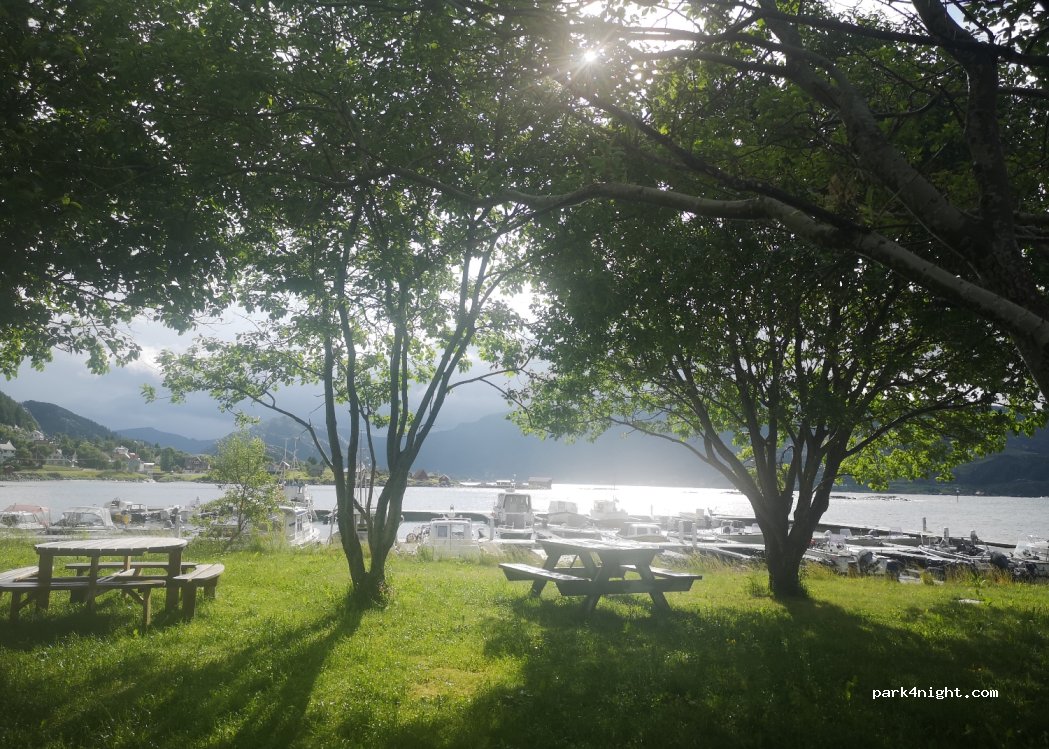 Stellplatz mit Aussicht auf die Marina bei einigen Plätzen. Es gibt noch eine Wiese für Zelte und Camper. Da es nur jeweils 1 Dusche für Damen und Herren gibt, kann es zu Wartezeiten kommen, wenn der Platz voll ist. Duschen einfach und sauber. Waschmaschine und Trockner für jeweils 50 NOK. Stellplatz incl. Strom 30p NOK, ist vollkommen OK. Bezahlung im Joker Supermarkt.