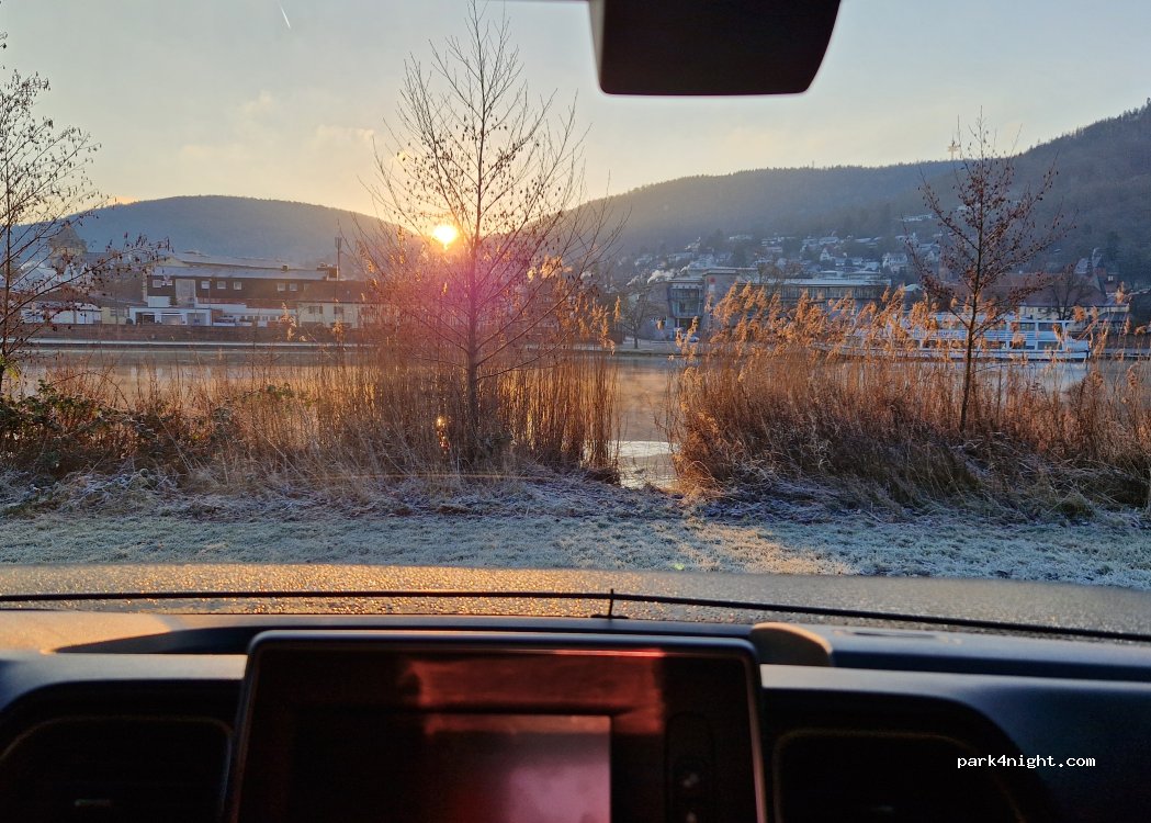 Ein toller Platz direkt am Main. Sauber, trocken und ruhig. Was will man mehr bei einem kostenlosen Stellplatz. Wenn man dann noch den dampfenden Main bei -4 Grad als Ausblick hat und die Sonne über Miltenberg aufgeht, kann das nur ein toller Sonntag werden.