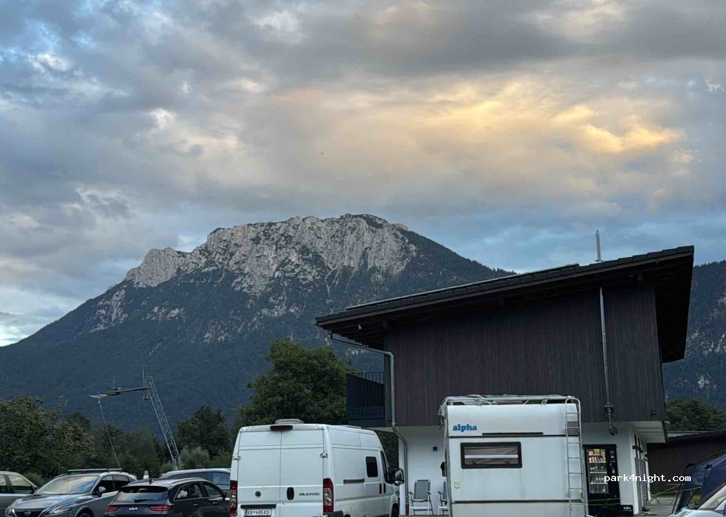 Place de parking directement sur une installation de ski nautique. Les toilettes et les douches peuvent y être utilisées moyennant un supplément. Calme la nuit. Seule la ligne de chemin de fer à proximité dérange un peu. Après Kiefersfelden, il faut environ 5 minutes en vélo. Il y a des boulangers, des bouchers, des commerçants. Les douches coûtent 50 cents.