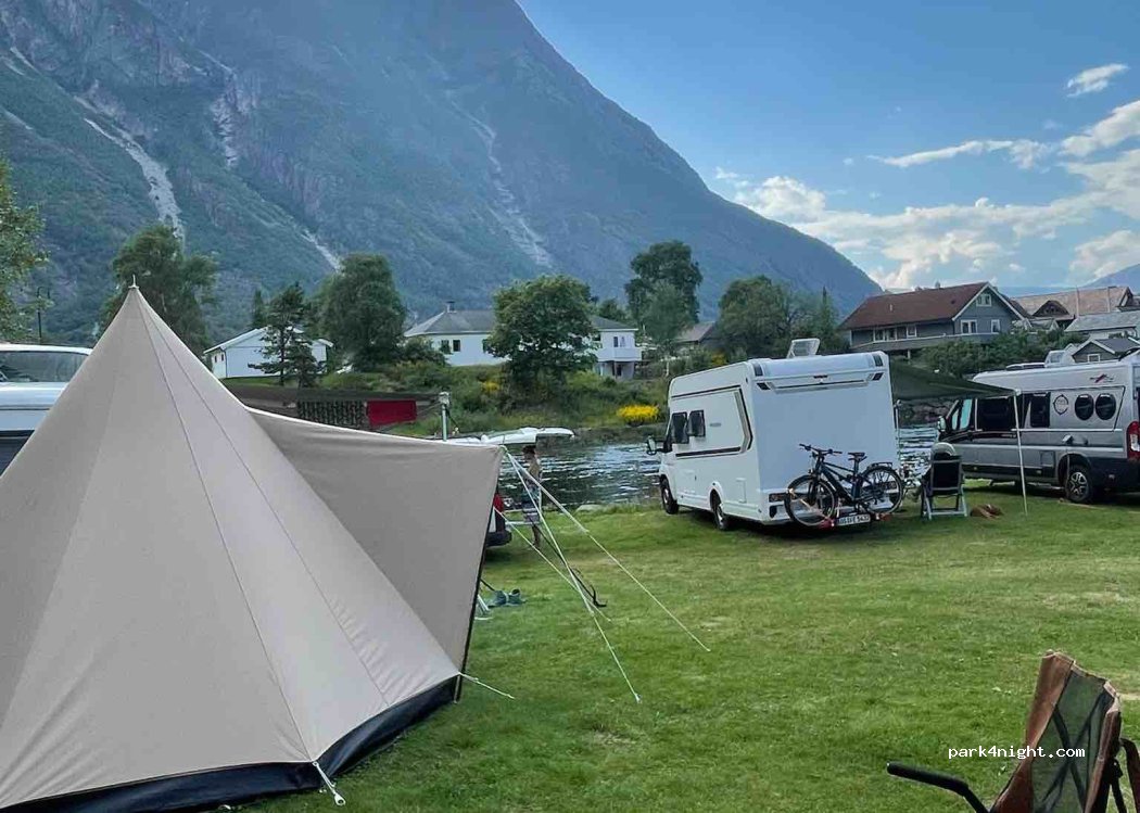 Prima camping, leuk en wat kleiner dan de enorme ernaast. Lekker rustig aan de rivier, geen overlast van toeristen of andere drukte, wees wel op tijd anders is het vol. Vissen mag helaas niet, bij het fjord wel. Faciliteiten waren wat verouderd maar schoon en helemaal prima. Wij hebben 260 NOK betaald voor 1 nacht zonder elektriciteit. Barbecueën mag ook!