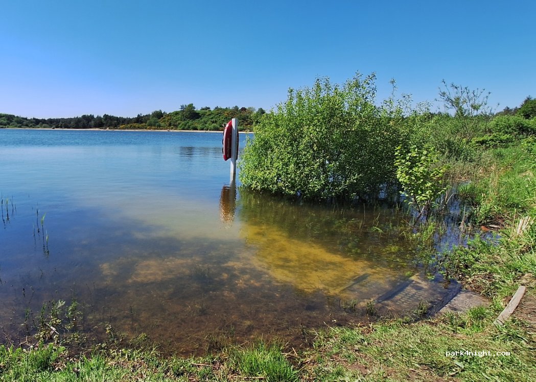Parking en gravier. Sanitaires, VTT, randonnées, barbecue, plan d'eau, cabane avec bois de chauffage, petit plan d'eau pour chiens à disposition. Les toilettes sont très simples, mais l'endroit est vraiment idyllique et calme, sauf pendant les vacances. ATTENTION le plein d’eau se fait au robinet avec marche à pied avec votre bidon obligatoire