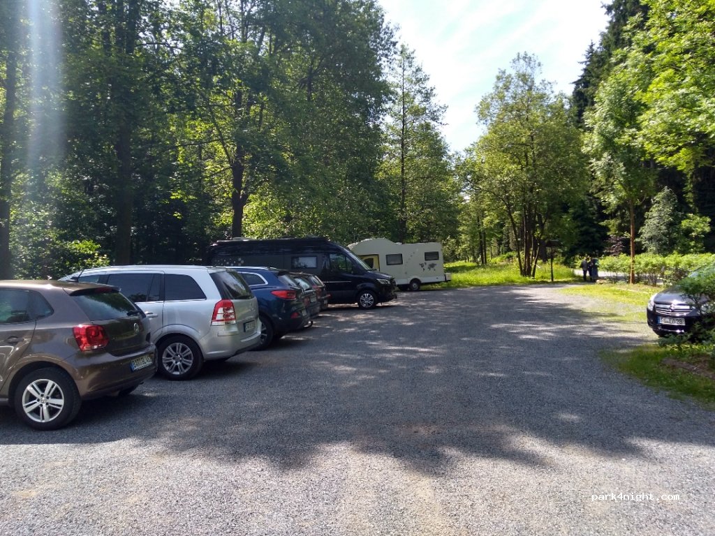 schöner ruhiger Platz direkt neben einem Bach und gegenüber des Hochofens. Wanderwege starten direkt am Parkplatz. War waren im Juni komplett allein.