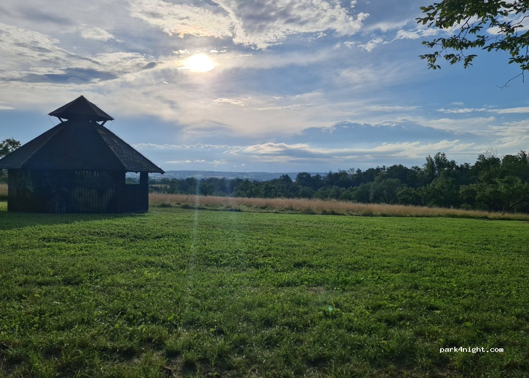 Ein schöner Parkplatz in Mitten von Obstwiesen, leider leicht schräg doch mit ein bisschen orientieren kann man problemlos schlafen. Der angrenzende Spielplatz ist schön gelegen und beinhaltet eine Feuerstelle, einen Grill sowie eine Grillhütte. Wir waren am Wochenende da und waren außer einen anderen Van die einzigen.