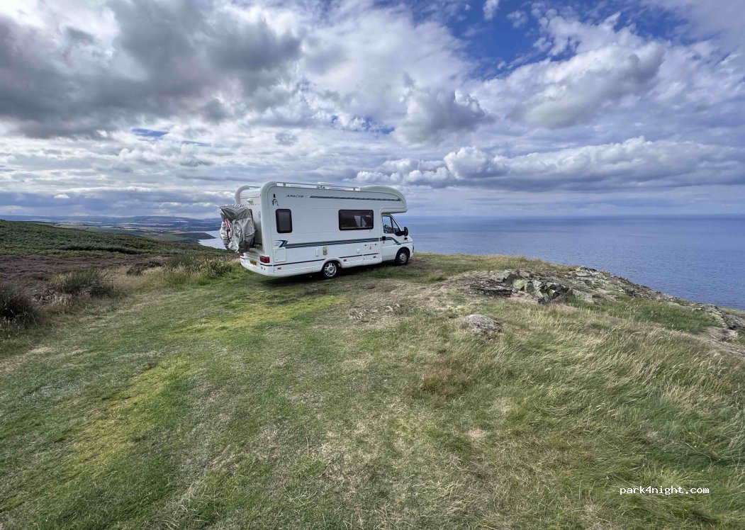 Amazing views across the North sea, ideal for one camper van. weren't disturbed at all by cars or people, in fact only saw one car go past in the morning. ground liable to bogging and a little uneven. would stay again for the view/sunrise