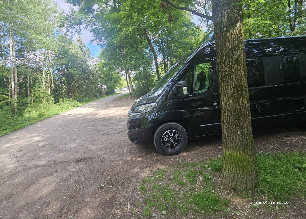 Nice small parking area right before the forest. Very quiet at night. It’s not totally isolated as it’s close to a few small houses but far enough to be silent and in the nature. I enjoyed going for a walk in the morning after waking up. If you have dogs - no dangers, they can walk freely around.