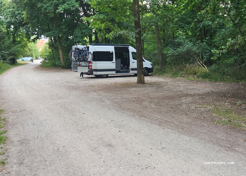 Small forest parking lot with 5 parking spaces. Close to the A9 near Nuremberg and the edge of the forest. Quiet at night.