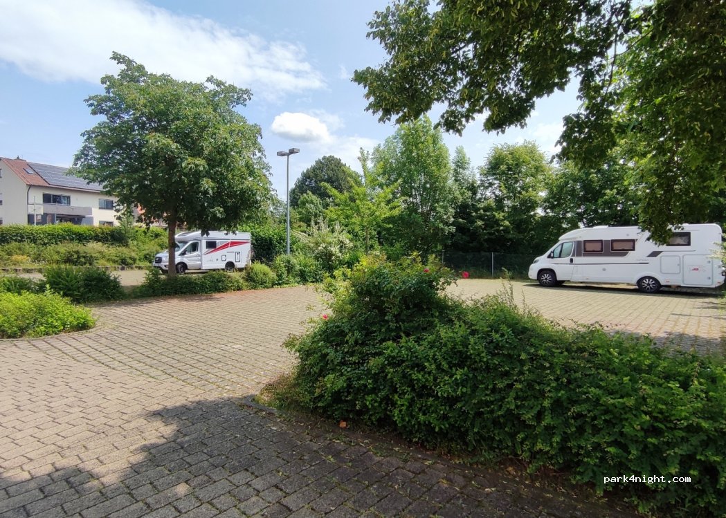 Direkt an der Schule/Mehrzweckhalle. Trotzdem sehr ruhig. Kein Schatten. Nur 4 Steckdosen. Je nach "Raumnutzung" Platz für 8 bis 12 Mobile. Nette Altstadt mit winzigen Gässchen. Öffentliche Toilette im Rathaus zu den Öffnungszeiten (8 Uhr)