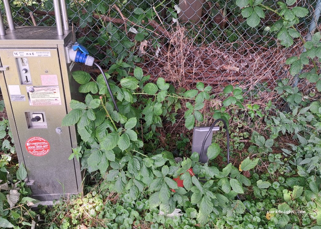 Paid parking space in the Fedderwardergroden district. The parking space is in a parking lot. Mostly flat place. Service on site: dogs allowed, fresh water, electricity, chemical toilet disposal, shower / outdoor pool. Leisure facilities at the outdoor pool. Disposal of gray water is difficult because four sides are fenced in, impossible. Toilet can be emptied. Entrance to the outdoor pool will be charged. max 3t