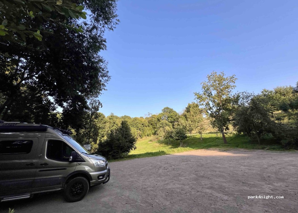 Sehr schöner Parkplatz direkt an einem Bach gelegen. 2€ für ein PKW völlig in Ordnung.