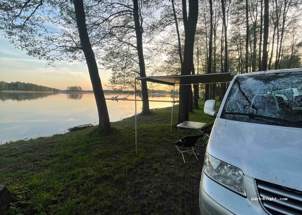 Schöner Campingplatz direkt am See mit Badestelle, 2 Stegen, auch zum Angeln geeignet. Leider kein Geheimtipp mehr und besonders an den Wochenenden überfüllt, so dass die Sanitäranlagen nicht mehr für die anwesenden Camper, ca. 40 Womos/Wohnwagen und viele Zelte nicht mehr ausreichen und die Putzfrau mit 2mal Reinigung am Tag nicht mehr hinterherkam. Die WCs bei den Damen waren häufiger verstopft, wurde aber gleich wieder behoben. Bei den Damen 3 WCs und 2 Duschen. Pro WoMo je nach Länge 6 bzw. 7 €, Erwachsene 5 € und Kinder 4€. Besitzer spricht nur Polnisch, benutzt aber seiner Handy App zum Übersetzen. Tretboot, Angelkahn oder Kanus können ausgeliehen werden. Wenn es regnet ist der Platzt schnell matschig und trocknet nicht gut ab. Müll wird nicht getrennt, daher waren die vorhandenen Mülltonnen immer schnell mehr als voll. Der Besitzer verfügt über einen großen Fuhrpark zum Rasenmähen, den er einen Tag von morgens bis abends betrieben hat, ohne Mittagsruhe zu beachten. Aber auch die Mülltonnen werden einmal täglich mit dem Quad geleert. Unter der Woche waren ca. 30 Fahrzeuge und weniger Zelte da. Die erste Reihe am See ist aber immer schnell wieder besetzt, in dem letzten 5 Tagen aber auch die 2. Reihe und der Hügel vor dem Besitzerhaus. WLAN funktioniert nur ab und zu stundenweise.