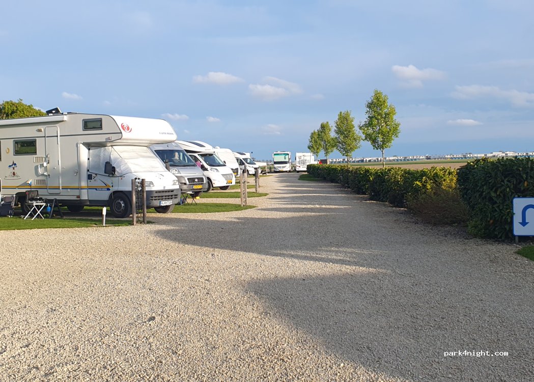 Een ontzettend mooie plek. Je kijkt vanaf je camperplek over wijde gestrekte boeren velden. De parkeerplaatsen zijn verhard, maar bij elke plek heb je je stukje privé gras, zodat je echt het gevoel hebt dat je op een grasveld geparkeerd staat. Het is echt een aanrader!