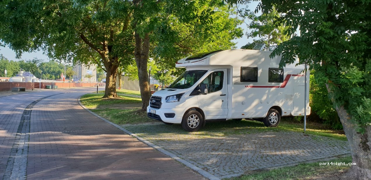 Es gibt zahlreiche Parkplätze in der Ecke. Wir haben nahe dem Spielplatz geparkt und übernachtet. Alles sehr sauber und schön angelegt. Toiletten (frei) und Duschen (0,50 €) in der Tourist-Information. Schöne Stadt. Bis zum Meer knapp 3 km am Kanal entlang, das Ueckermünder Haff noch etwas weiter.