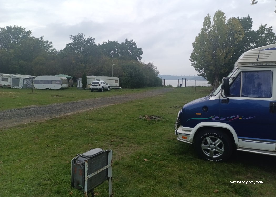 Camping avec espace pour branchement électrique mobile, douches et toilettes disponibles. D'accord pour une à deux nuits. 1 mobil home, électricité et deux personnes 13 EUR. Toilettes ok douche avec 10kc 10min eau chaude 5kc 5min fonctionne uniquement avec couronnes / machine ne prend pas d'euro élimination disponible / eau douce par bidon possible WiFi disponible - mais ne fonctionne pas sur toute la place Snack à l'entrée de l'aire de jeux / tennis de table / mini golf ... 90% campeurs permanents