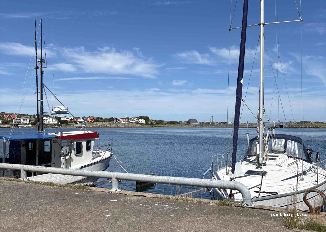 Ruhiger aber völlig unspektakulärer Stellplatz im alten Hafen, knappe drei Minuten Fahrzeit von der (kostenlosen) Fähre entfernt. Entweder in erster Reihe direkt an der Kaimauer oder in zweiter Reihe hinter den alten Fischerhütten. In zweiter Reihe auch für langes Wohnmobile geeignet. Die Stellplätze bestehen aus zwei nebeneinanderliegenden Parkplätzen und sind daher recht großzügig bemessen und auch zum draußen sitzen geeignet. Der nächste ICA Supermarkt ist nur wenige Gehminuten entfernt. Das WLAN ist auf dem gesamten Platz für verfügbar, Abends jedoch gut ausgelastet. Einziges Manko, für die knapp 20 Stellplätze gibt es nur zwei Toiletten, zwei Duschen (mit Handbrause und Regendusche) und ein Waschbecken zum Geschirr abspülen. Der Platz und das Servicegebäude sind jedoch sauber und ordentlich.