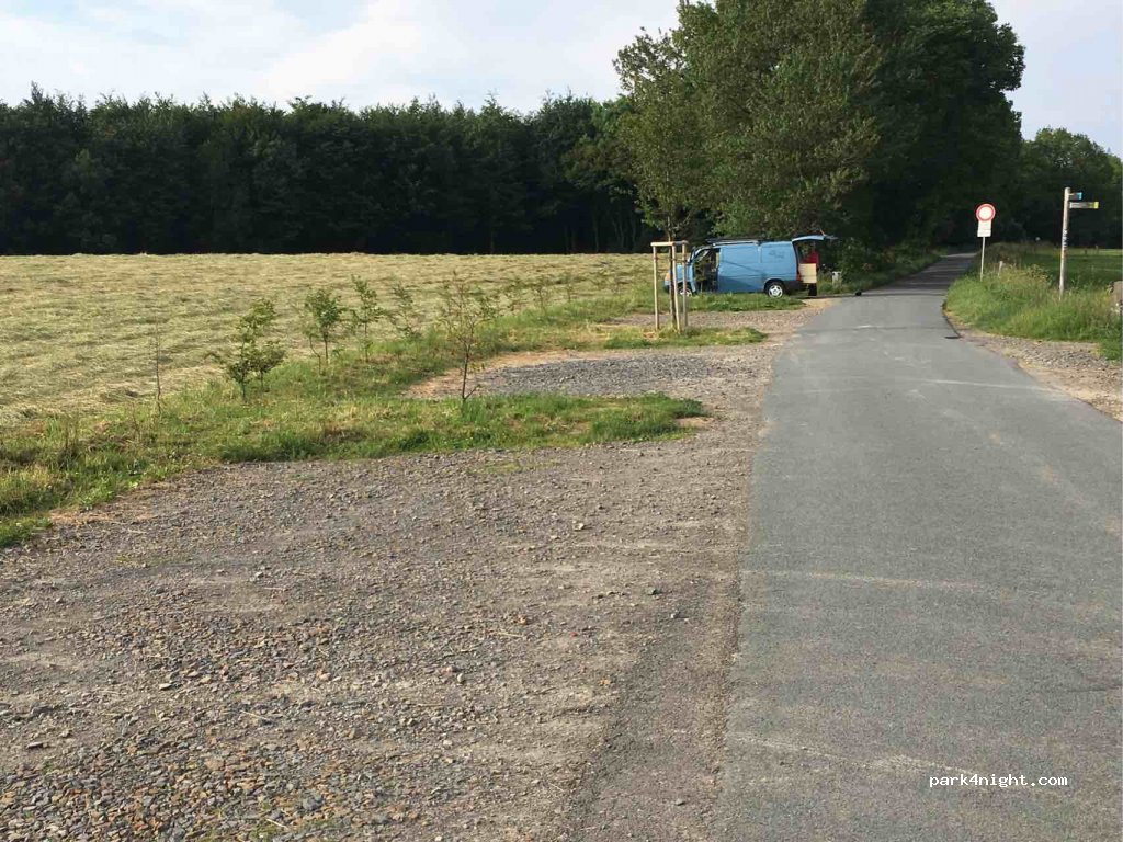 Hiking parking above Wipperfürth with great views and a dam close by, restaurants nearby. Highly frequented by hikers, runners, those with dogs, cyclists, but all very friendly. Very quiet at night, suitable for small campers. A really great place with a beautiful sunset!
