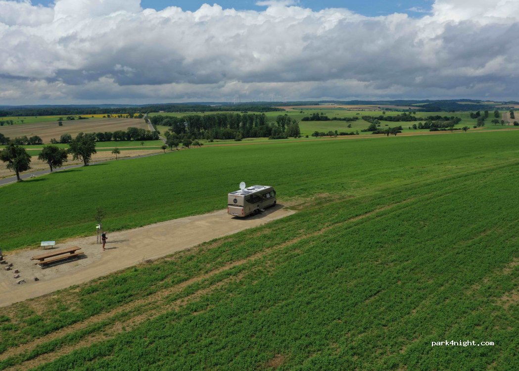 Mooi uitzicht. ´s Nachts heel rustig, maar overdag passeren er regelmatig voertuigen en je staat nogal dicht bij de baan. ´s Avonds komen er ook bij goed weer regelmatig anderen aan de picknick tafel zitten. Mooie zonsondergang.