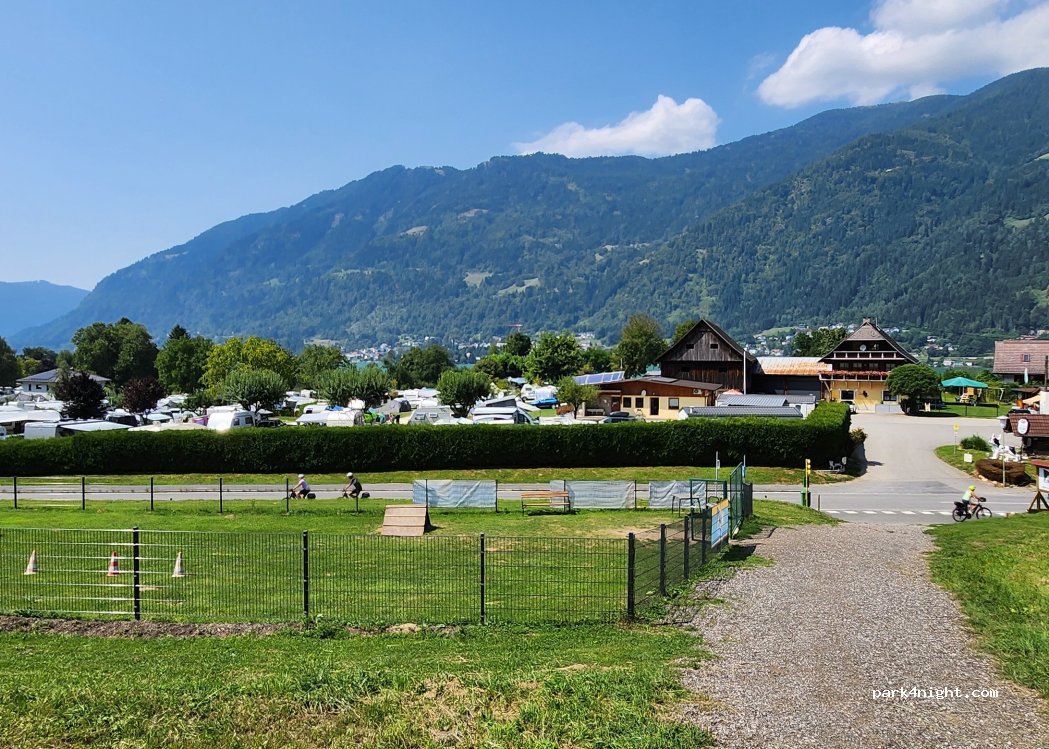 Very nice campsite on the Ossiachersee, dogs are welcome, have their own beach. Fresh baked goods in the morning, directly from the bakery. In the square small snack bar, restaurant in the immediate vicinity.