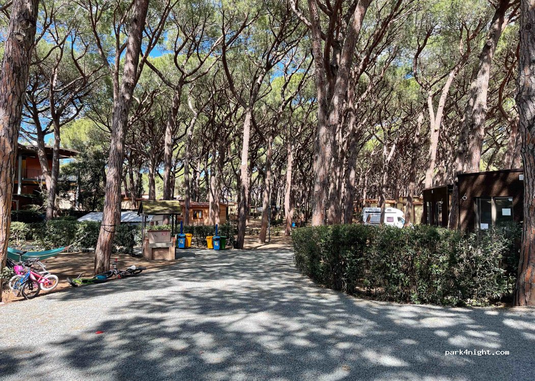 Ottimo camping. Belle le piazzole, servizi perfetti, piscina molto bella (imita un laghetto), spiaggia e mare belli, 'area cani interna, negozi, ristorante, bar, di tutto e più, pulizia assoluta. Appena fuori inizia la straordinaria pineta che porta fino a Cecina riserva protetta. È cara (68 € camper 4 persone ed un cane a metà giugno), è eccessivo pagare extra la piscina (gratuita fino alle 11).