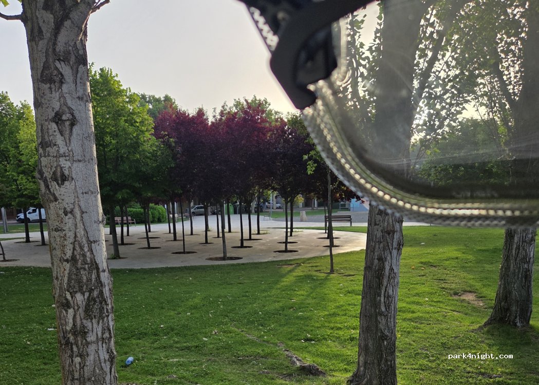 Parking público, tranquilo y seguro. Atención con aparcar en el lado de los jardines, a las 6.00 AM empieza el riego automático. Atentos al acceso, se confunde con el paso rebajado para minusválidos del paso de cebra. Perros prohibidos en el parque.