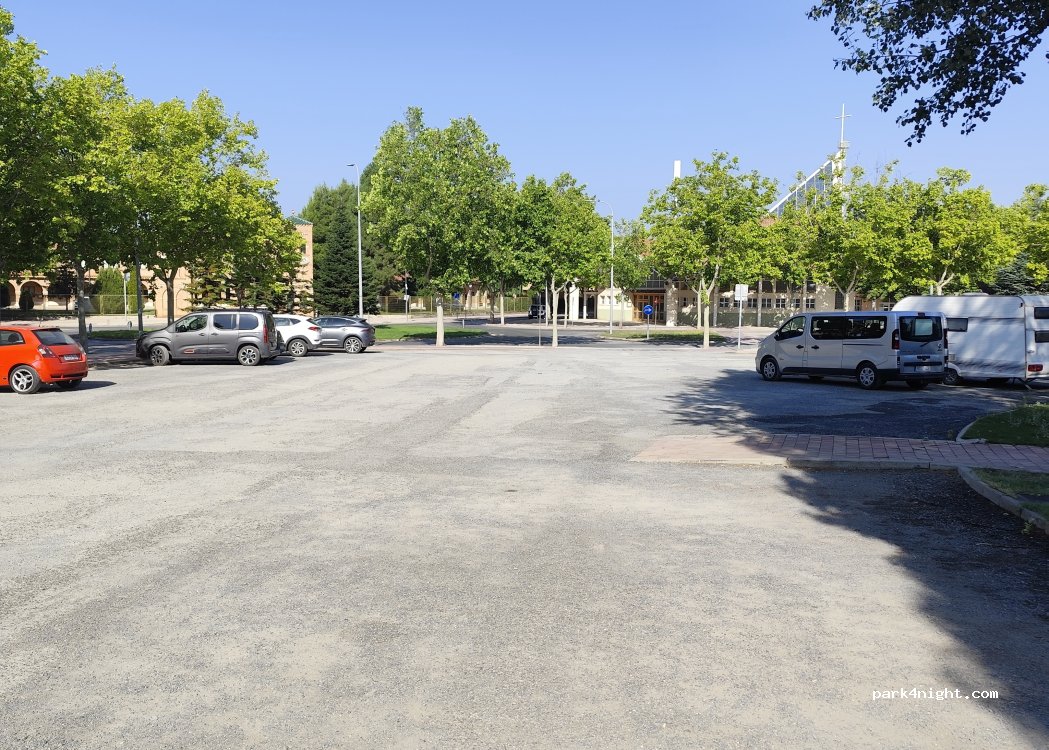 Parking gratuit ou se regroupent les camping-cars, assez bien situé près d'espaces verts et à 2 pas du Mercadona pour faire les courses. Calme, très peu de passage même en journée. Pas de service.