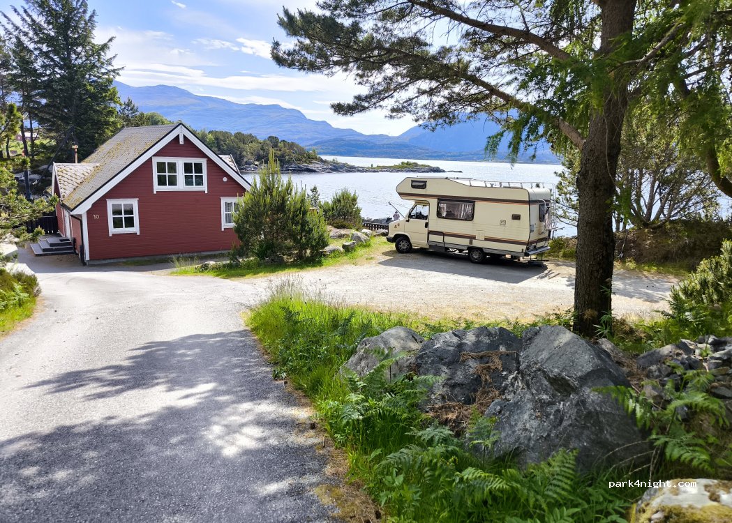 Top Campingplatz,schon ein kleiner Geheimtipp.Direkt am Fjord,sehr gemütlich mehrere kleine Stellplätze.Wir hatten quasi eigene Launch für uns.Toiletten/Duschen top, sauber.10 Nok 4min.Betreiberin Nett und spricht deutsch.Wir haben für WW Auto mit Strom 300 Nok bezahlt.Geht auch mit Karte.Sind auch 2 Tage geblieben.Nur zu empfehlen.