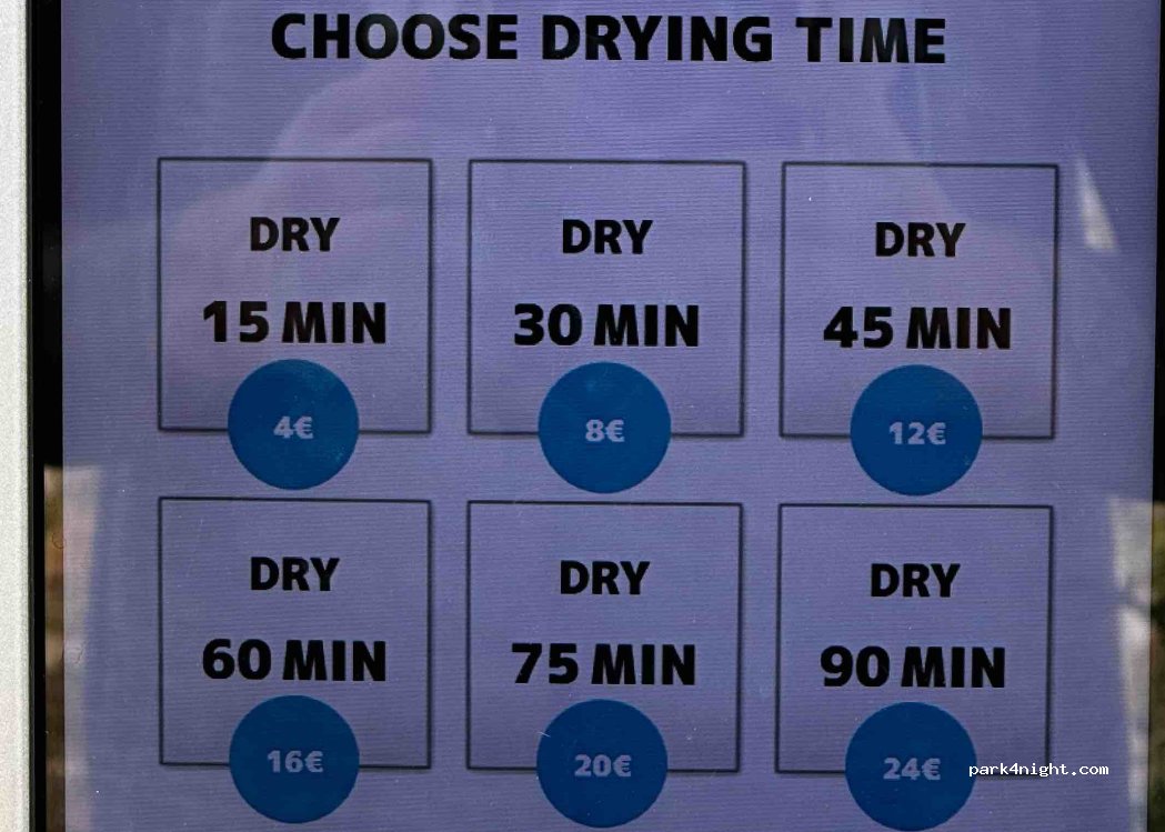 Perfect place to stay overnight , feels really safe , the shower is for 4€ for 20 min , there’s also washing machine for 8€ a wash and 4€ for 15 min of drying , highly recommended!! , I stayed in my small car
