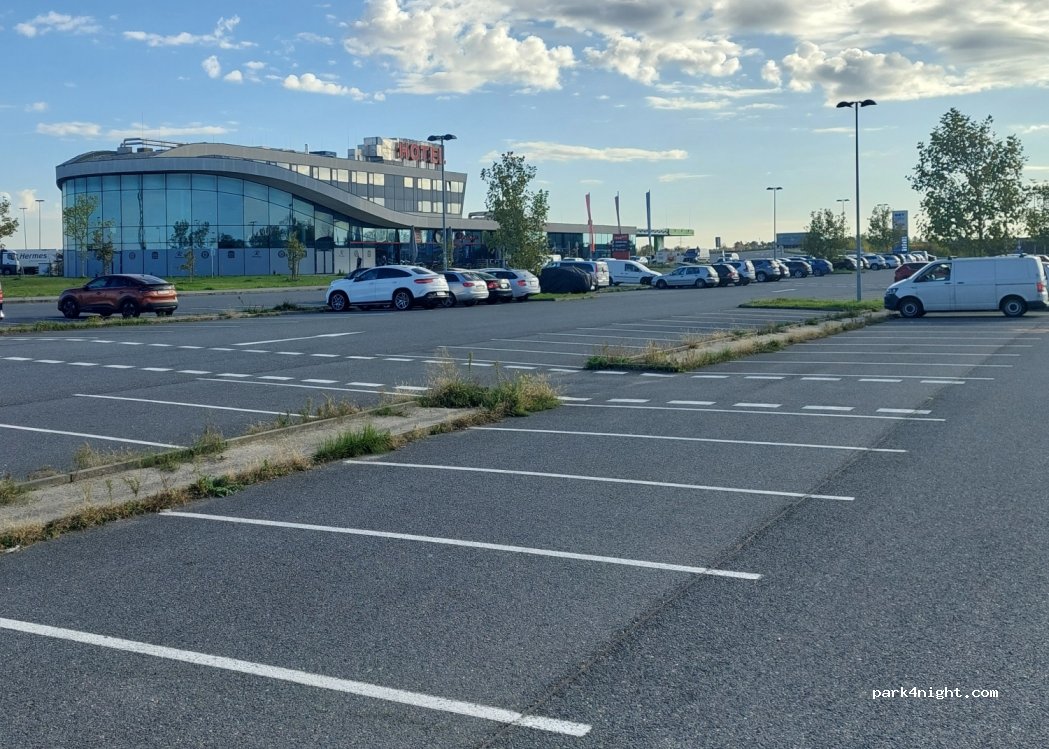 Clean and safe place to spend the night. The toilet is practical and clean, costs €0.70 – perfect for morning hygiene. There’s a coffee shop & Burger King on site. The spot is dog-friendly, with a large meadow perfect. It’s relatively quiet – you can hear some traffic from the nearby highway, but it’s not loud enough to disturb your sleep. All in all, a great place for a rest or an overnight stop!