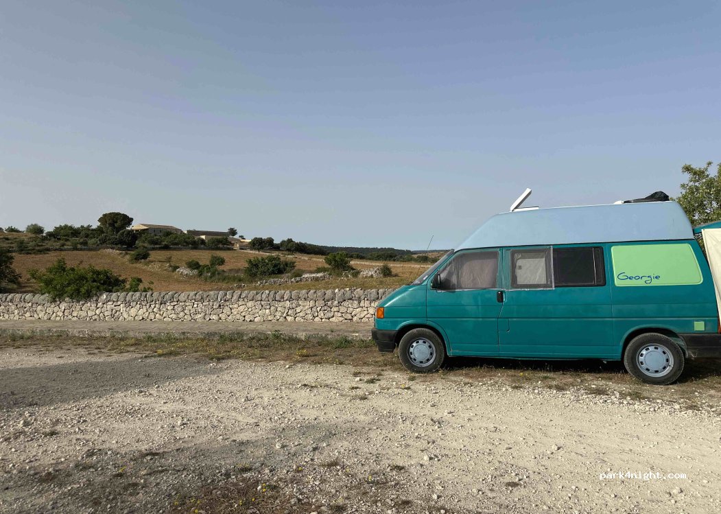 Parking très très calme seul bémol l'accès avec ccar + remorque est vraiment très juste par la petite route en double sens. Nous sommes reparti par le village de FERLA et les toutes petites rues en descente et angle droit, m'ont fait beaucoup transpiré. En fourgon pas de problème mais avec un attelage c'est beaucoup plus difficile