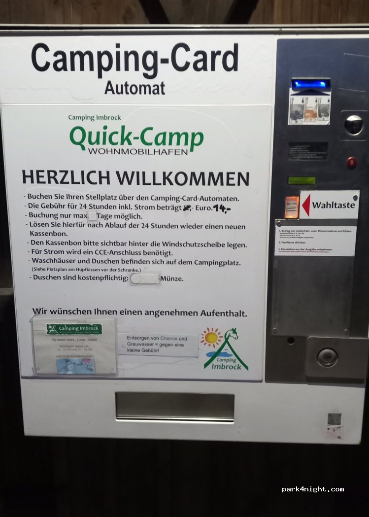 Guter Platz. Strom und Wasser auf dem Quick Camp vorhanden. Buchung über einen Automaten. Also nicht abhängig von den Öffnungszeiten. Tagesticket jetzt 14 Eur / pro Tag. (Stand Juli 2022)