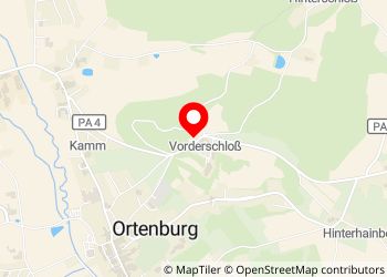Parking at Schloss Ortenburg. Next door tavern, beer garden at the castle, wildlife park and a forest education hikingtrail.