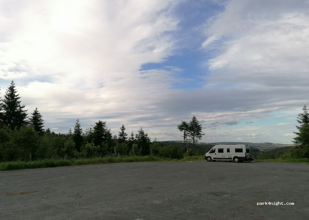 Absolut empfehlenswert!! Großer Schotterparkplatz, ideal zum parken mit wunderschöner Aussicht, wirklich gut zu erreichen über die eher schwach befahrene Straße, dadurch auch echt ruhig gelegen. Highlight ist vor allem eine riesige (zufällig von uns entdeckte) Lichtung, östlich über den Rennsteig zu erreichen, mit weitem Blick in die Ferne Richtung Sonnenaufgang. Ehrlich ein Geheimtipp!
