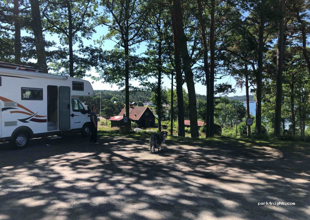 Wunderbarer Platz, sehr nette Betreiber. Wir haben einen Stellplatz mit traumhaftem Ausblick auf den Sund bekommen. In der Nebensaison inkl. Strom 350 SEK bezahlt. Die Duschen, Toiletten und die Küche sind super sauber und geräumig. Grauwasser und Toilettenentleerung sind auch vorhanden.