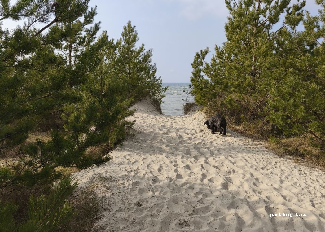 Fajne miejsce. Nie działające prysznice i toalety. Nie można zrzucić ,ani dobrać wody. Ale prąd w cenie. Może być na 1 noc. Blisko do plaży( nawet dla psów ). Są tylko miejsca przy keji. Cześć w lesie nie czynna.
