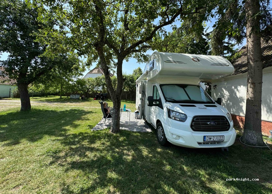 Superb site. Secure vicarage garden. Very friendly host (Dan) speaks sufficient English. Toilets and showers are clean and of a high standard. Ideal for campervan, motorhome or tent. Superb fortified church 1 minute walk away. Small supermarket 3 minutes walk. Choice of restaurants within 1.5km of easy flat walking. Highly recommended!!! ***Telephone before arrival***