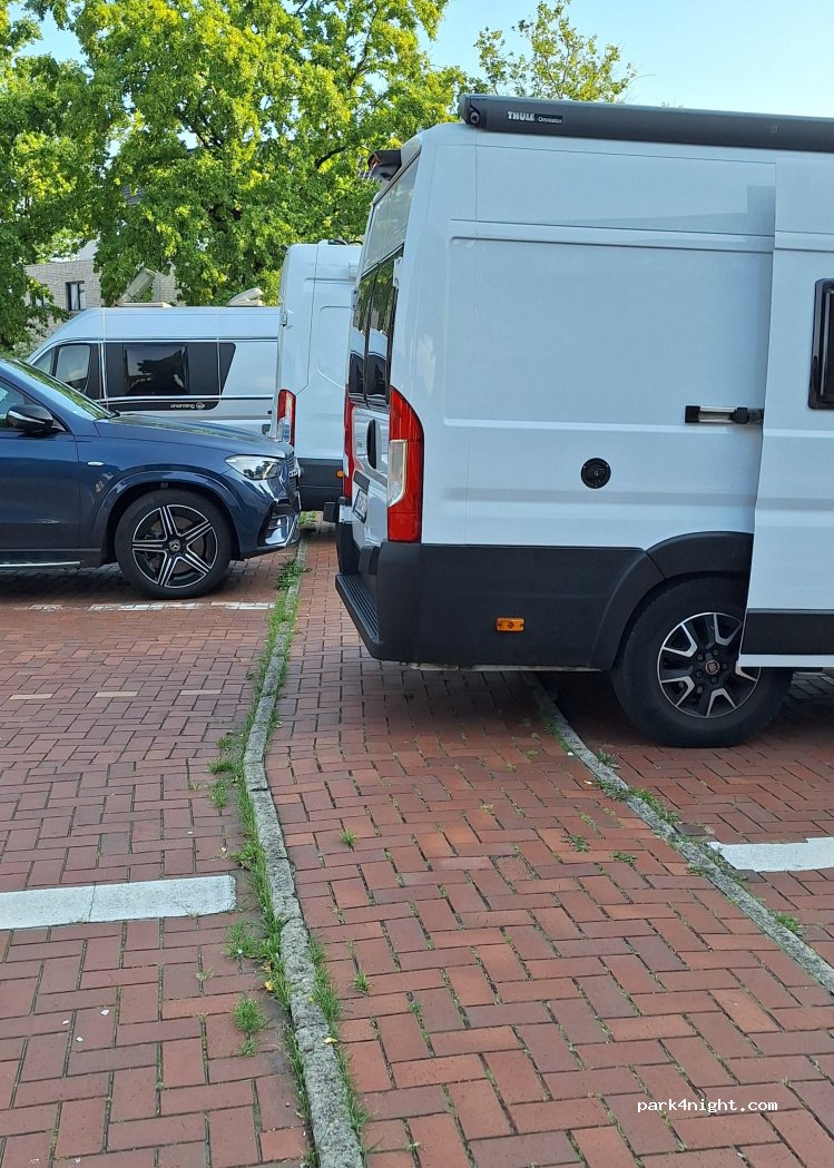 Fine spot for one night in town square, spots are a little short voor 6,5 m but there was ample parking anyway