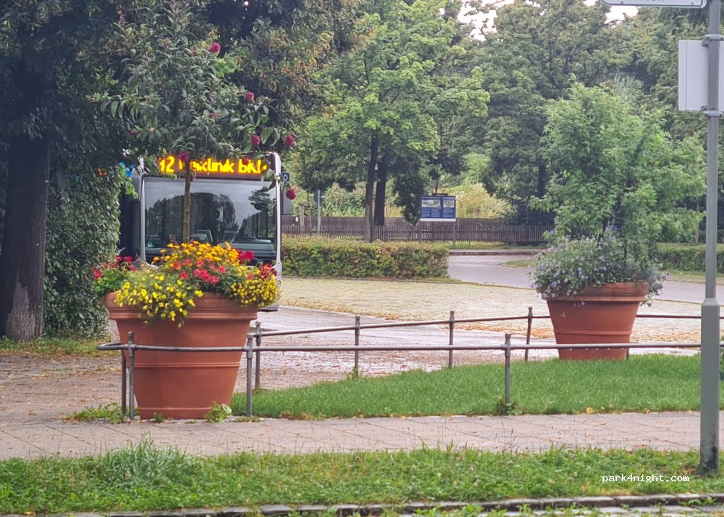 Große Womos nur an wenigen Parkplätzen am Rand mit Überhang möglich. Abends ist der Parkplatz leer. Aber bei Sonderveranstaltungen im Zoo oder Botanischen Garten kann der Platz auch bis 23 Uhr sehr voll sein Aber auch mit Überhang ist hier die Grenze 6.50 bis 7m , da sonst Front in der Fahrspur Praktisch der Bus fährt direkt am Platz in die Innenstadt. Karte kann man beim Fahrer kaufen